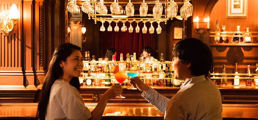 テーブルサービスの生ビールやカクテルを扱うラウンジ