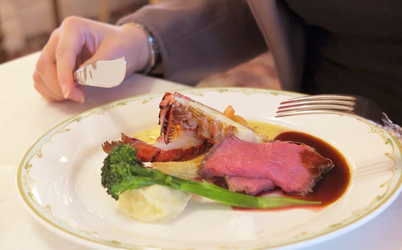 テーブルサービスの肉や魚のコース料理を扱うレストラン
