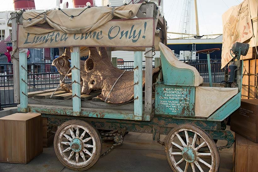 ④お店の外に置いてあるトリケラトプスの頭蓋骨は、北米国立博物館の展示物なのだが、展示室が完成する前に港に届いてしまったため、博物館と以前から交流のあった「バーナクル・ビルズ」が、一時的に保管場所として店頭スペースを提供したというストーリーがある。