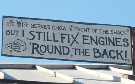 ⑤店の外では、あちこちでメニューよりも恐竜の宣伝文句を掲げ、希少な恐竜の骨を全力で客寄せのために利用しているのがわかる。